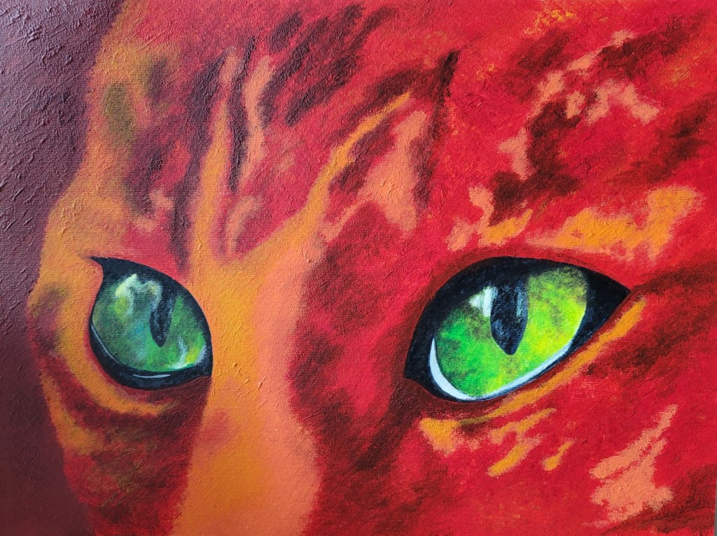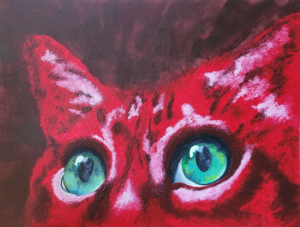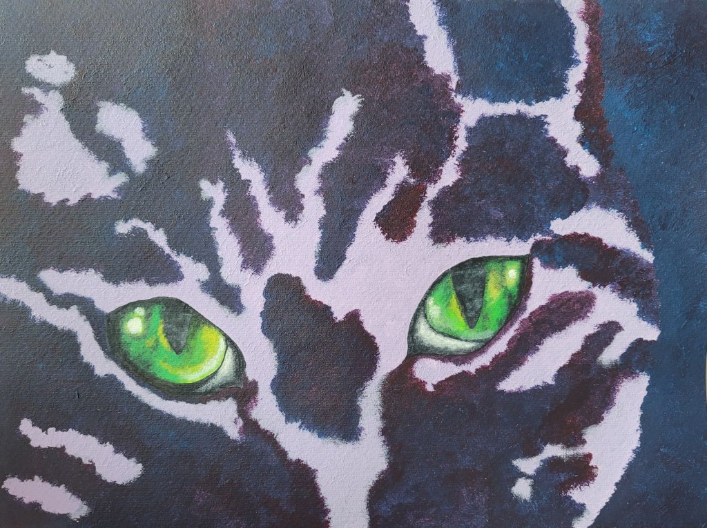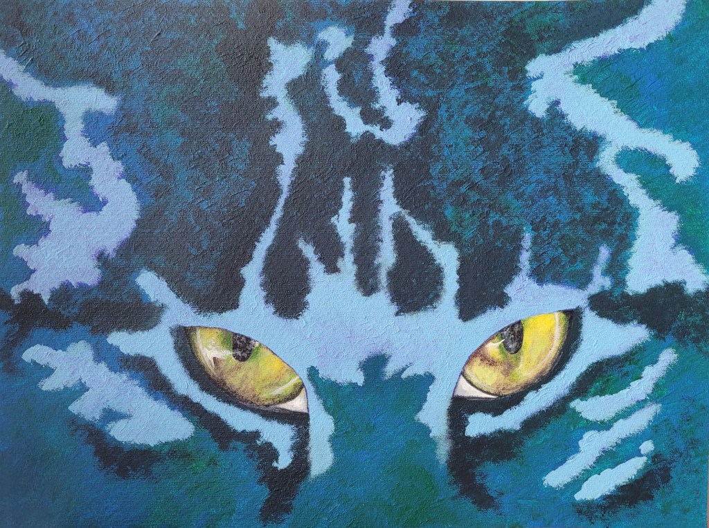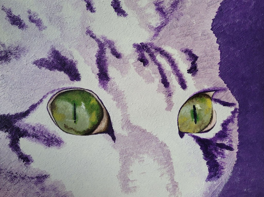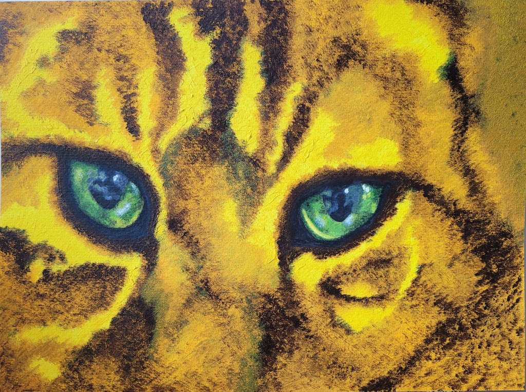 My husband and I got married because of cats. When we met, I had four, and he had three cats. After we got married, we had a total of seven. These seven cats are all old cats. They passed away one by one after we got married. The last old cat died when I initiated this painting project in February 2020. I am so grateful to them for bringing us precious moments in the past 20 years. They are the most beautiful cats in my eyes. What about me in their eyes? What do they have to say?