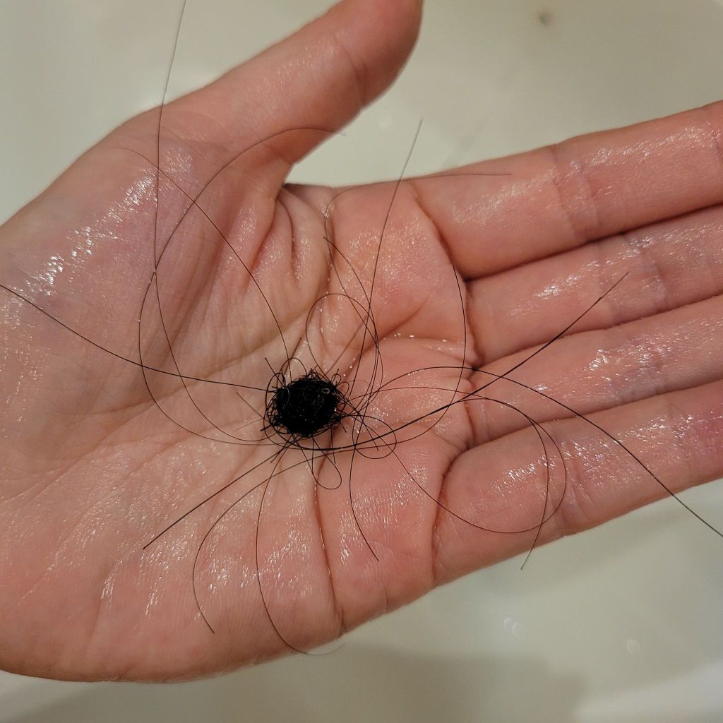 脫髮不一定是病態,正常人每天都會脫下50-60條頭髮。它是我身體的一部份,它每天都會死去一部份,離我而去;同時又會每天長出新的頭髮,循環不息。我開始收集我自己的脫髮,紀錄我身體某部份的死亡和出生。