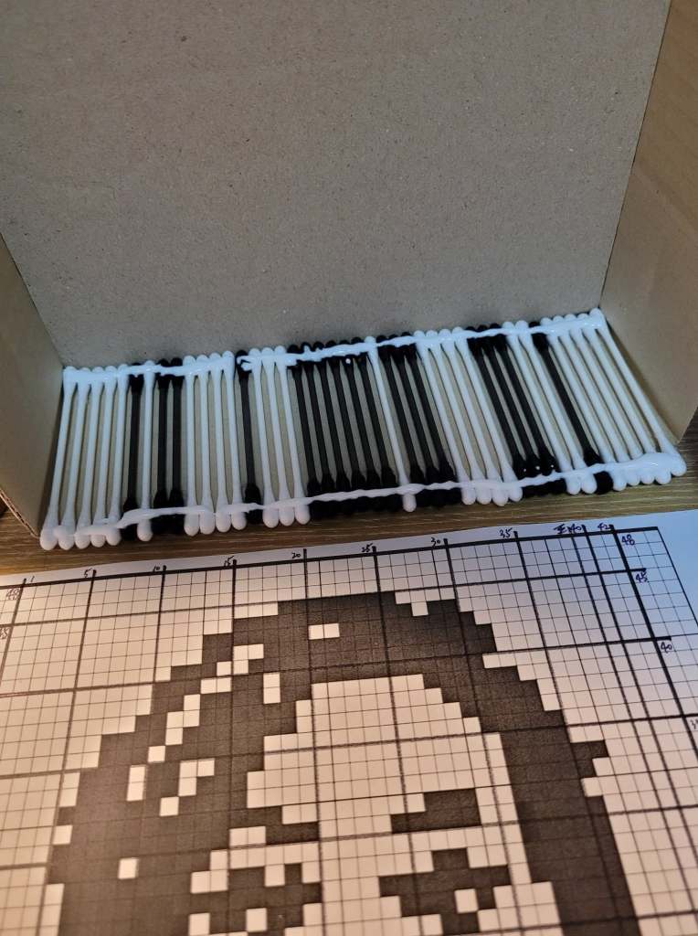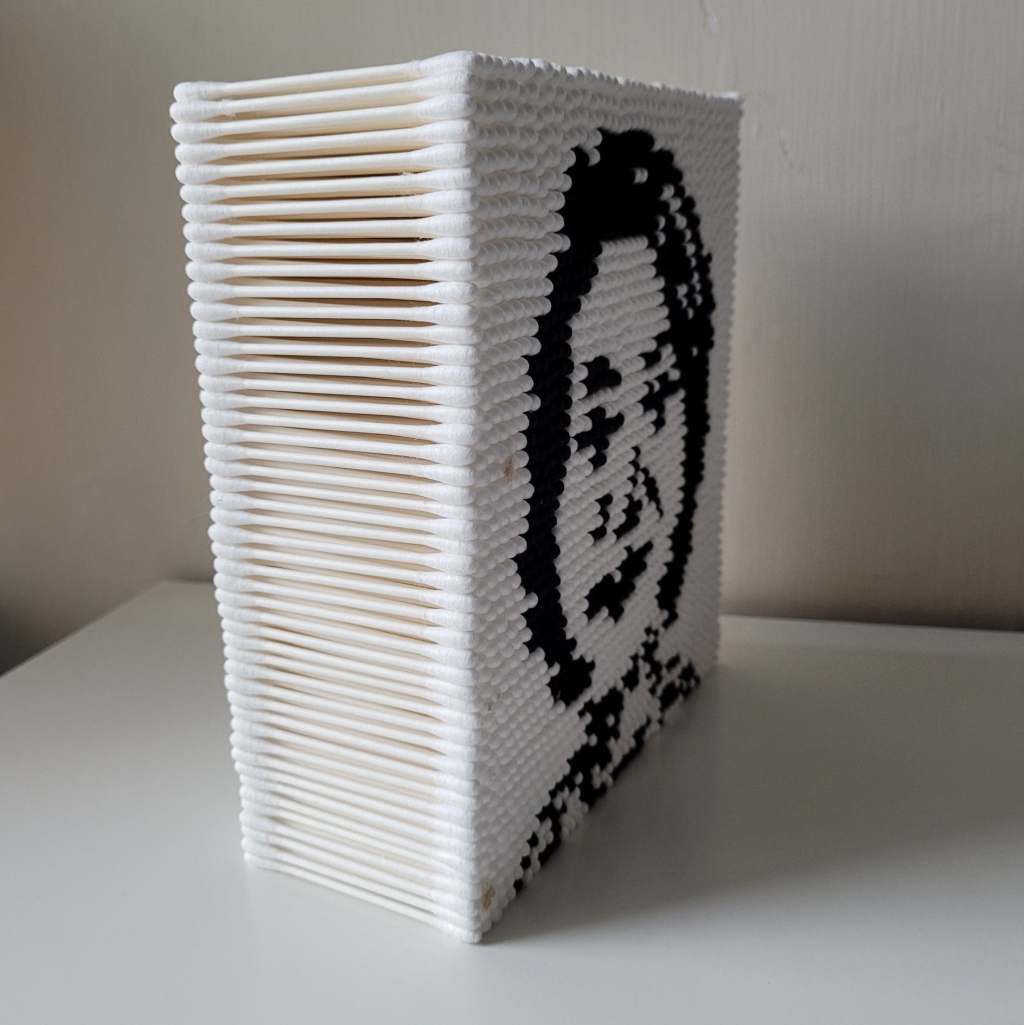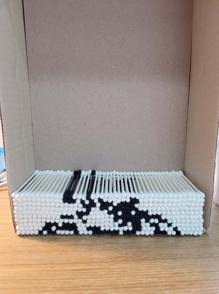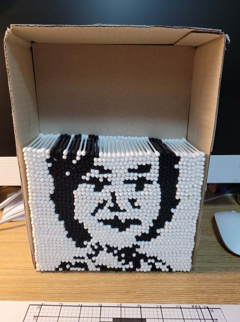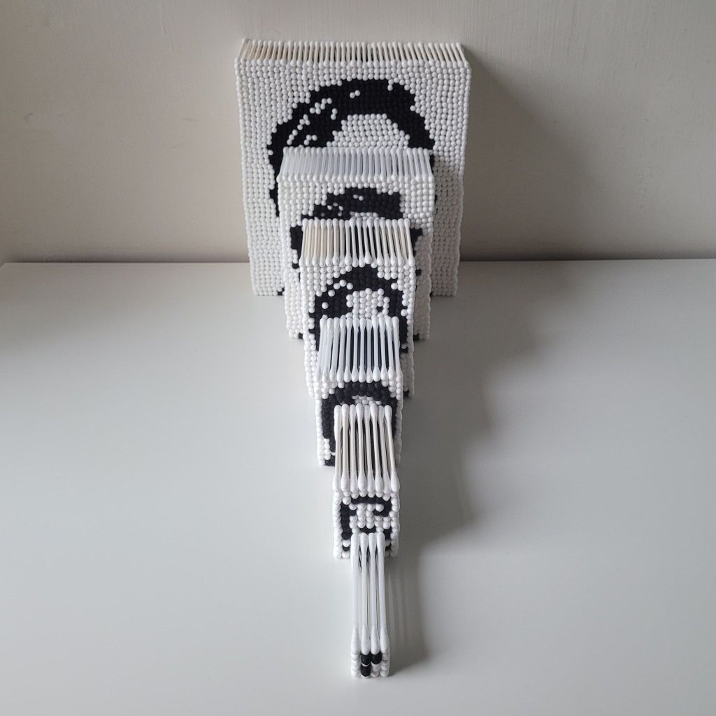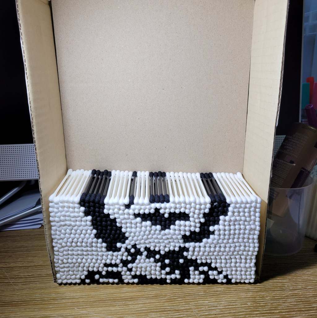 NFT Pixel Art is the most popular type of NFT Art nowadays. It simulates the low-resolution visual art of the 1980s with a blurry avatar. With the characteristics of the cotton swab like the pixel, I create an object from a virtual NFT Art concept, and then the work will upload to the NFT Art platform for sale after the photograph. From virtual to physical and from physical to virtual. Am I physical or virtual?