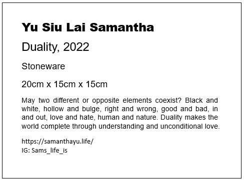 Exhibitions:2022 & 2023 | Hong Kong Art School Advanced Diploma in Fine Art Graduate Exhibition (Hong Kong) ;2023 | The Collectible Art Fair (Hong Kong) ;2024 | Collect Hong Kong (Hong Kong) .