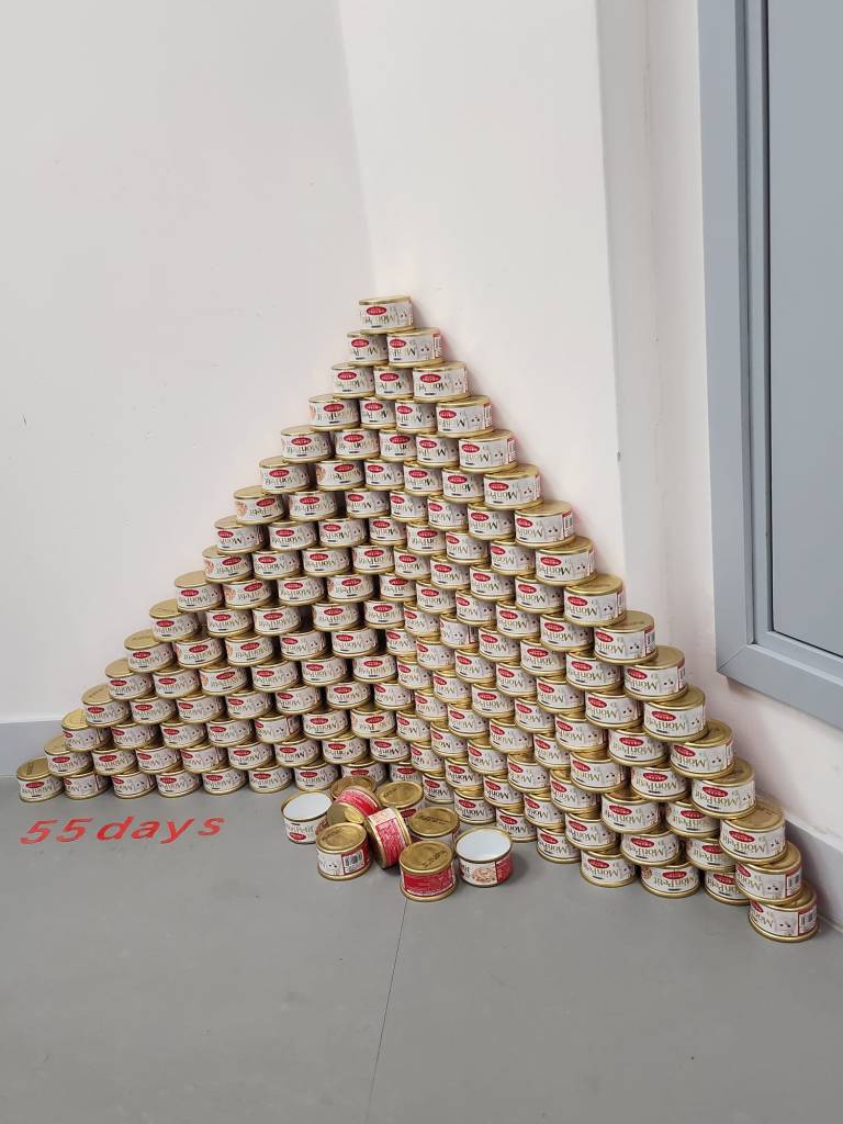 Days. Everyday cats meals’ quantity represented by 3 cans