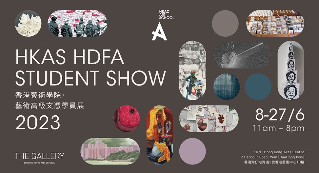 HKAS HDFA Student Show 2023 showcases the learning journey of the Higher Diploma in Fine Art program at Hong Kong Art School in the past academic year. This exhibition presents a selection of learning achievements. It displays a group of passionate art lovers, under the interaction of teaching and learning, their initial exploration results of contemporary art with different mediums and creative methods.