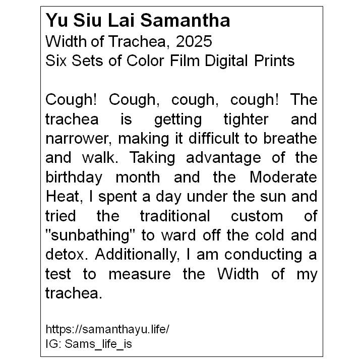 【氣管的寬度】咳!咳咳咳!氣管越來越緊、越來越窄,呼吸困難、舉步難行。趁著生日月,又是小暑,把僅餘的命仔,拿到烈日當空下曬曬,試著以往的民間習俗「曬伏」,盼望排出陳寒、濕毒,順道測試氣管的寬度。